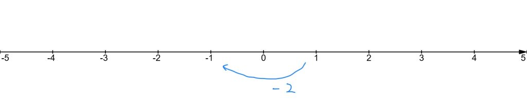 \(1-2\)を計算したいときは、数直線を使って考えると、\(1\)から\(2\)だけマイナスの方向に進めばわかります。よって \(1-2=-1\)となります。